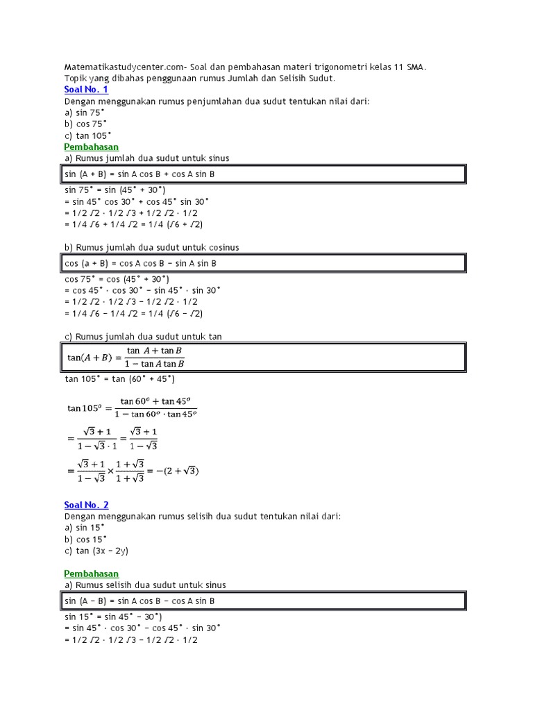 Soal Dan Pembahasan Trigonometri Kelas XI IPA